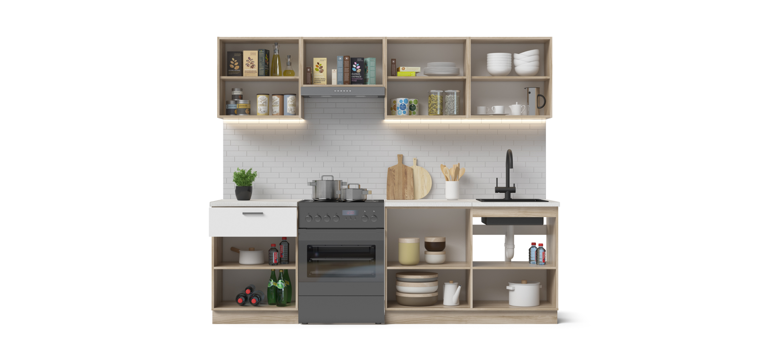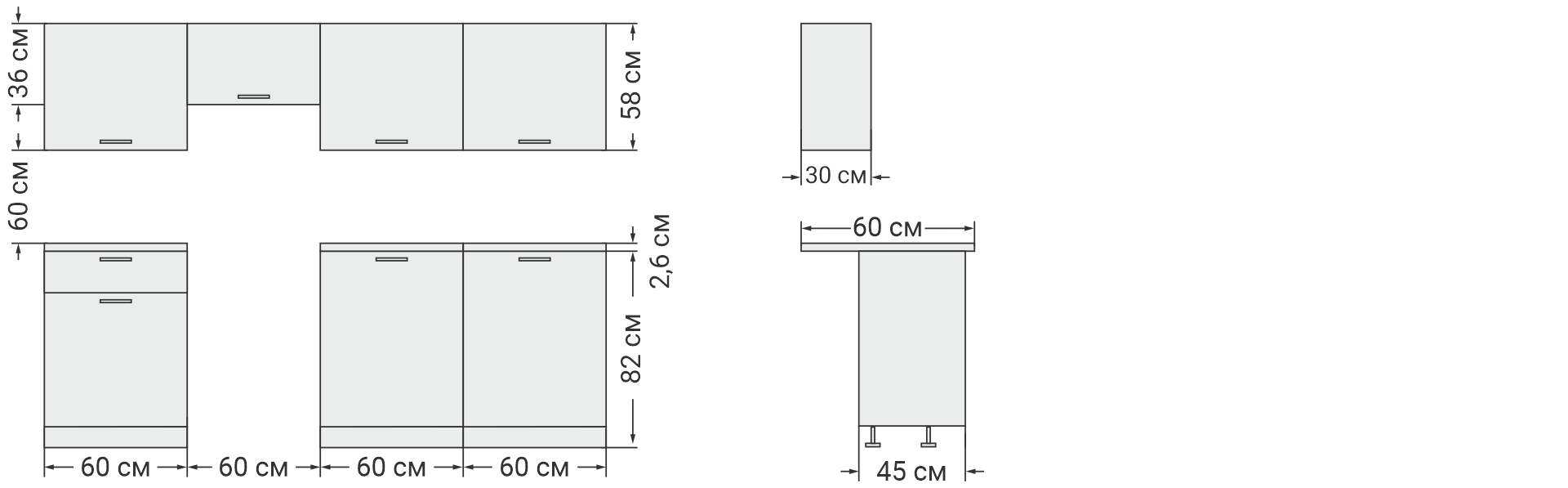 Цвет кухни "серый графит" создаст нейтральную базу для красивых интерьеров в стиле лофт, хай-тек. В комплект не входит подсветка, бытовая техника, мойка, смеситель и аксессуары.