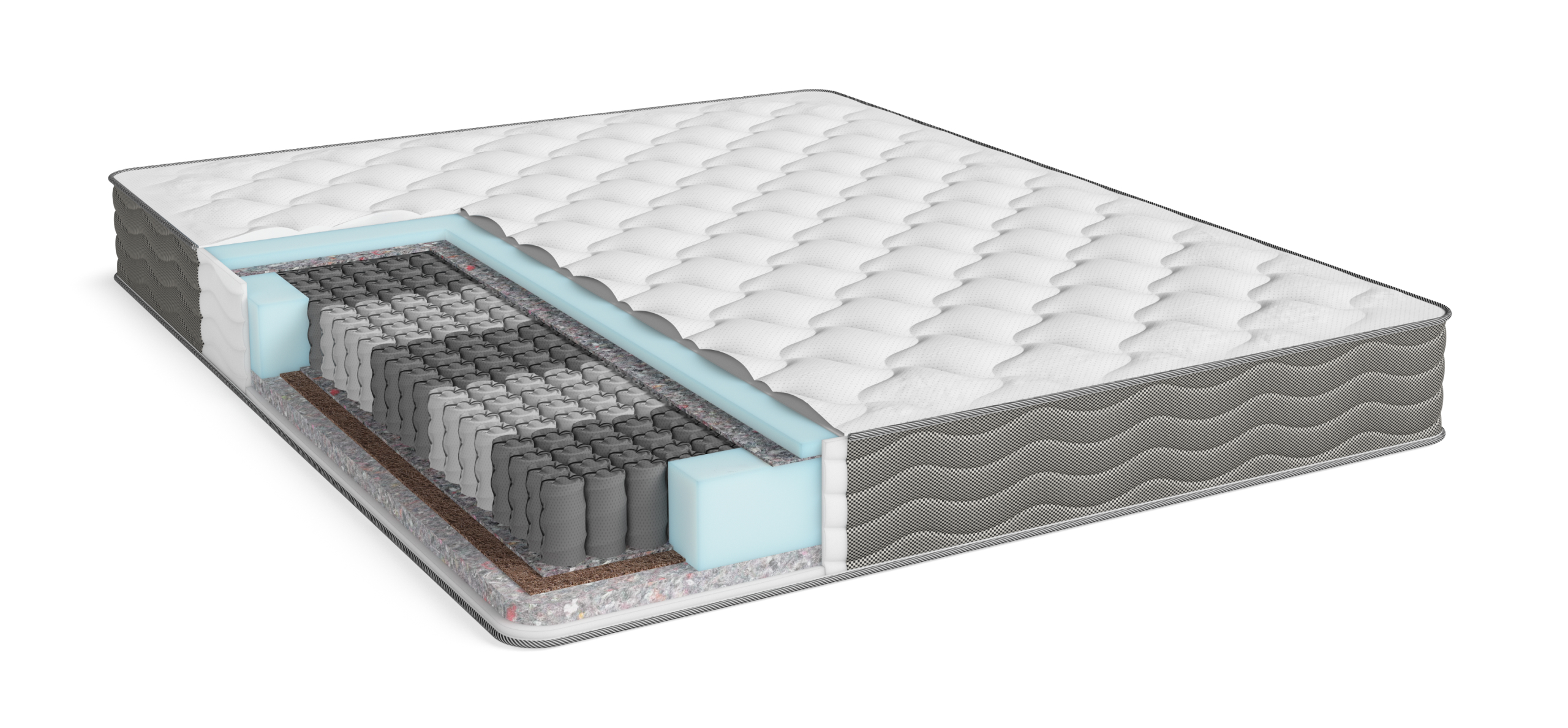 С другой стороны — латексированная кокосовая койра, которая придает матрасу оптимальную жесткость и поддержку тела, обеспечивая правильное положение позвоночника. Этот натуральный и экологичный материал не впитывает влагу, хорошо вентилируется и предотвращает появление бактерий и микроорганизмов, что делает его идеальным для здорового сна.