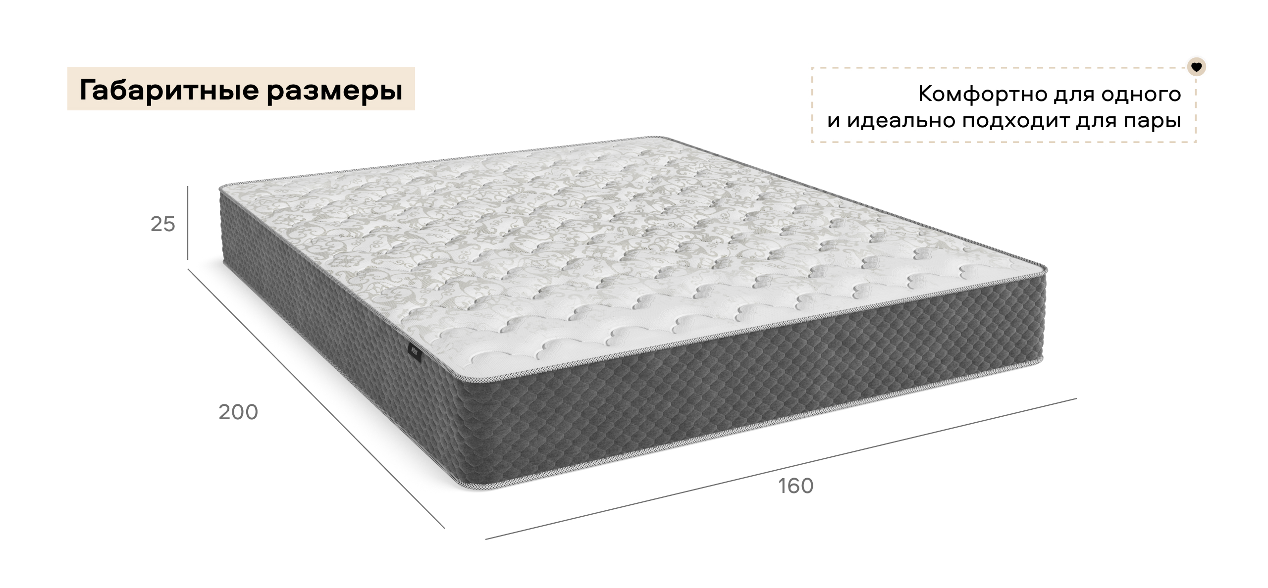 Мы настолько уверены нашем матрасе, что готовы передоложить Вам расширенную гарантию на него. Модель отлично подходит для пар с большой разницей в весе и для любой позы сна.