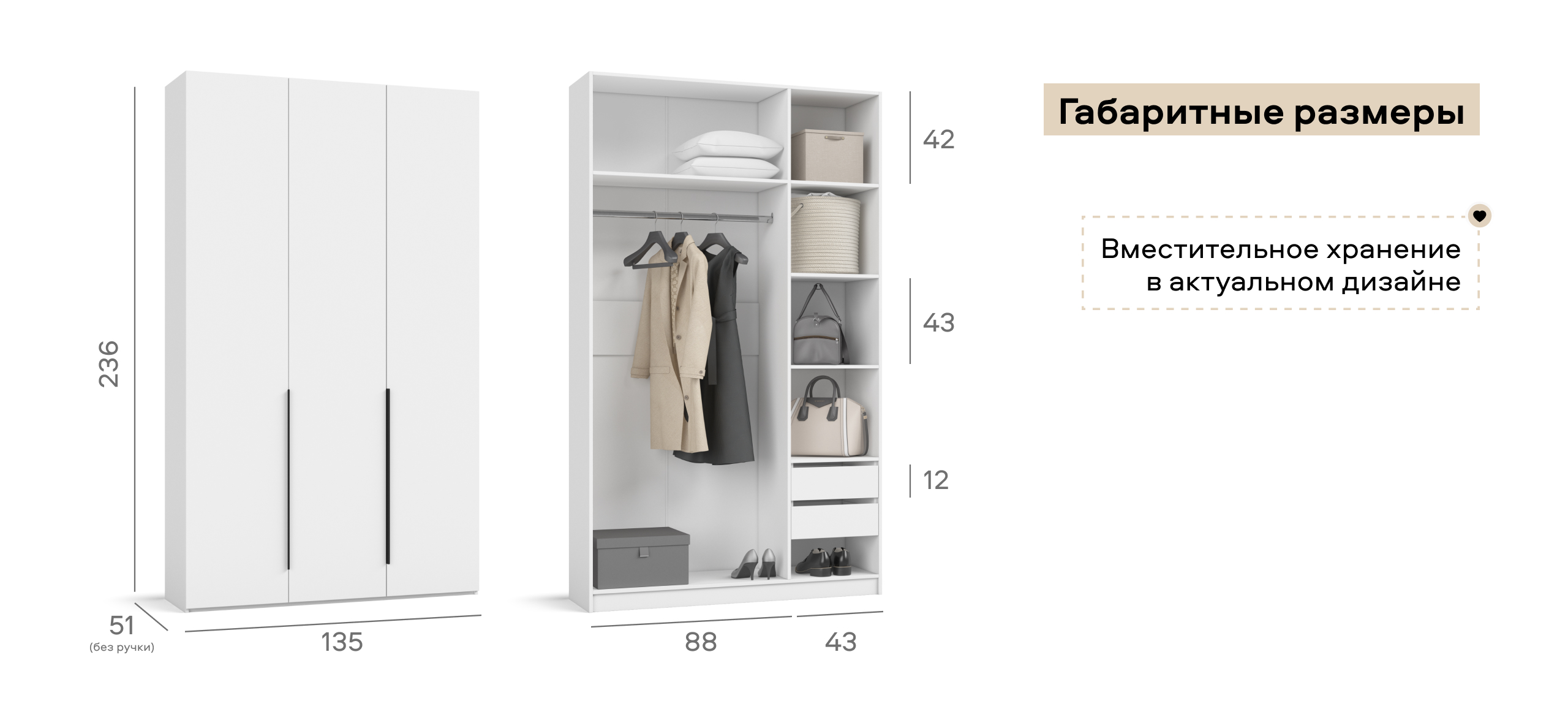 Босс Стандарт 135*236 шкаф распашной 3Д+ящики Белый