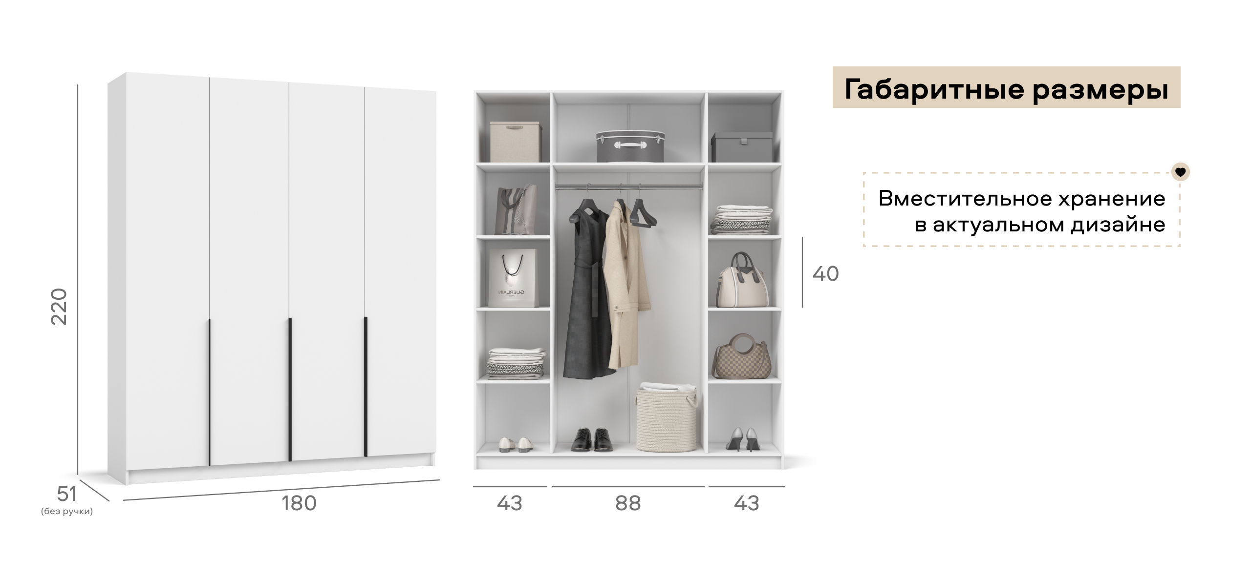 Шкаф Босс Стандарт 180 — масштабное, статусное решение для тех, кто хранит многое и ценит интерьер в трендах. Лаконичный фасад с удлинёнными чёрными ручками отражает эстетику 2025 года и становится выразительным акцентом любой спальни — от сканди до неоклассики. Увеличенная ширина и симметричная конструкция свободно принимают сезонный гардероб, обувные коробки и текстиль, сохраняя в комнате больше свободного пространства.