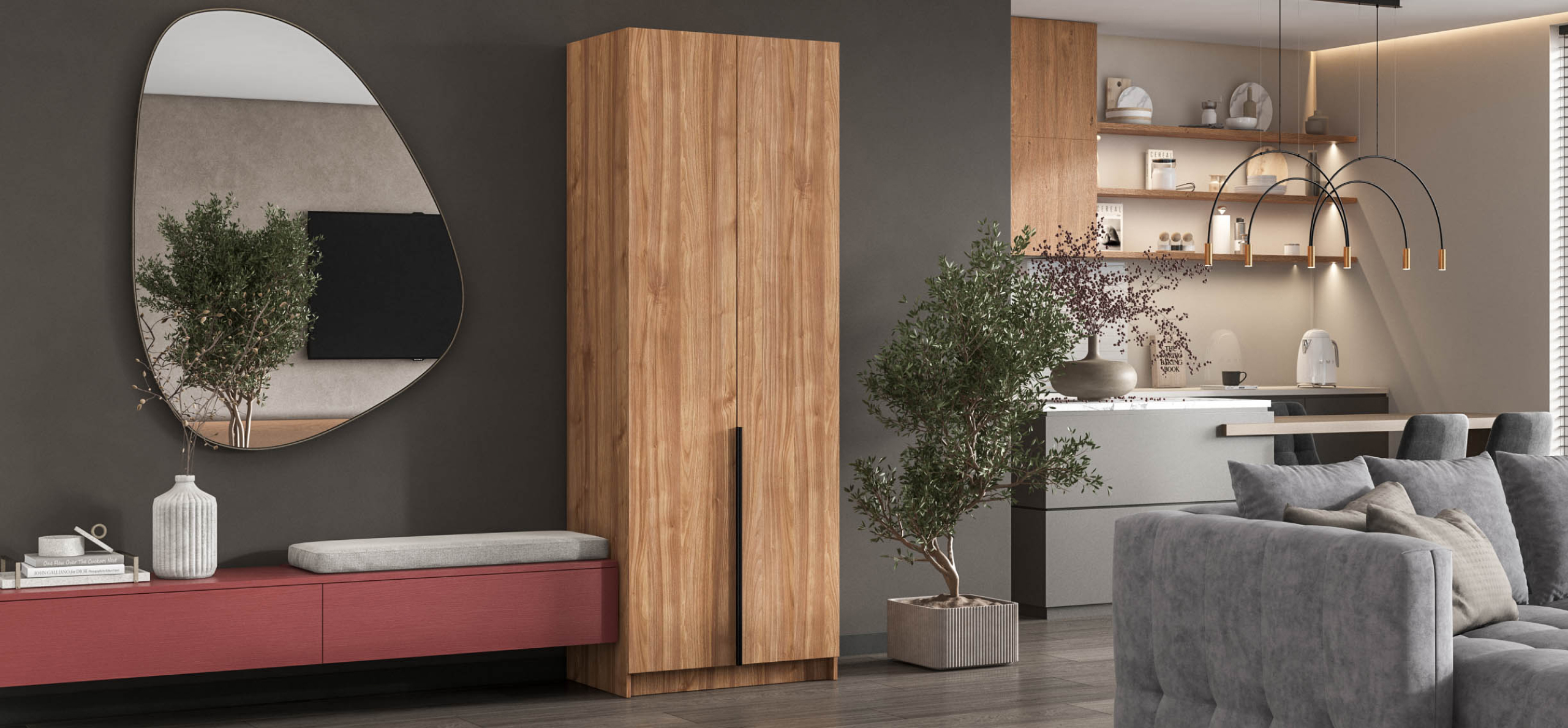 Шкаф Босс Стандарт 80 — компактное, но статусное решение для городской квартиры: хранить всё нужное, оставляя максимум свободного пространства. Лаконичный фасад с удлинёнными чёрными ручками отвечает эстетике 2025 года и становится ярким акцентом любого интерьера — от сканди до неоклассики. Каждый сантиметр внутри задействован: базовый гардероб, коробки с обувью и текстиль размещаются упорядоченно, освобождая комнату от визуального шума.