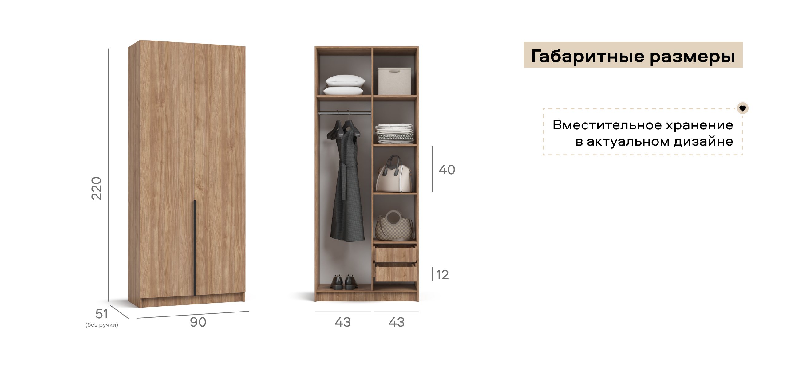 Шкаф Босс Стандарт 90 — компактное, статусное решение для городской квартиры: хранить всё необходимое, экономя пространство. Лаконичный фасад с вытянутыми чёрными ручками следует эстетике 2025 года и становится акцентом интерьера — от сканди до неоклассики. При умеренной ширине продуманное отделение принимает базовый гардероб, коробки с обувью и текстиль, поддерживая порядок и освобождая комнату от лишних вещей.