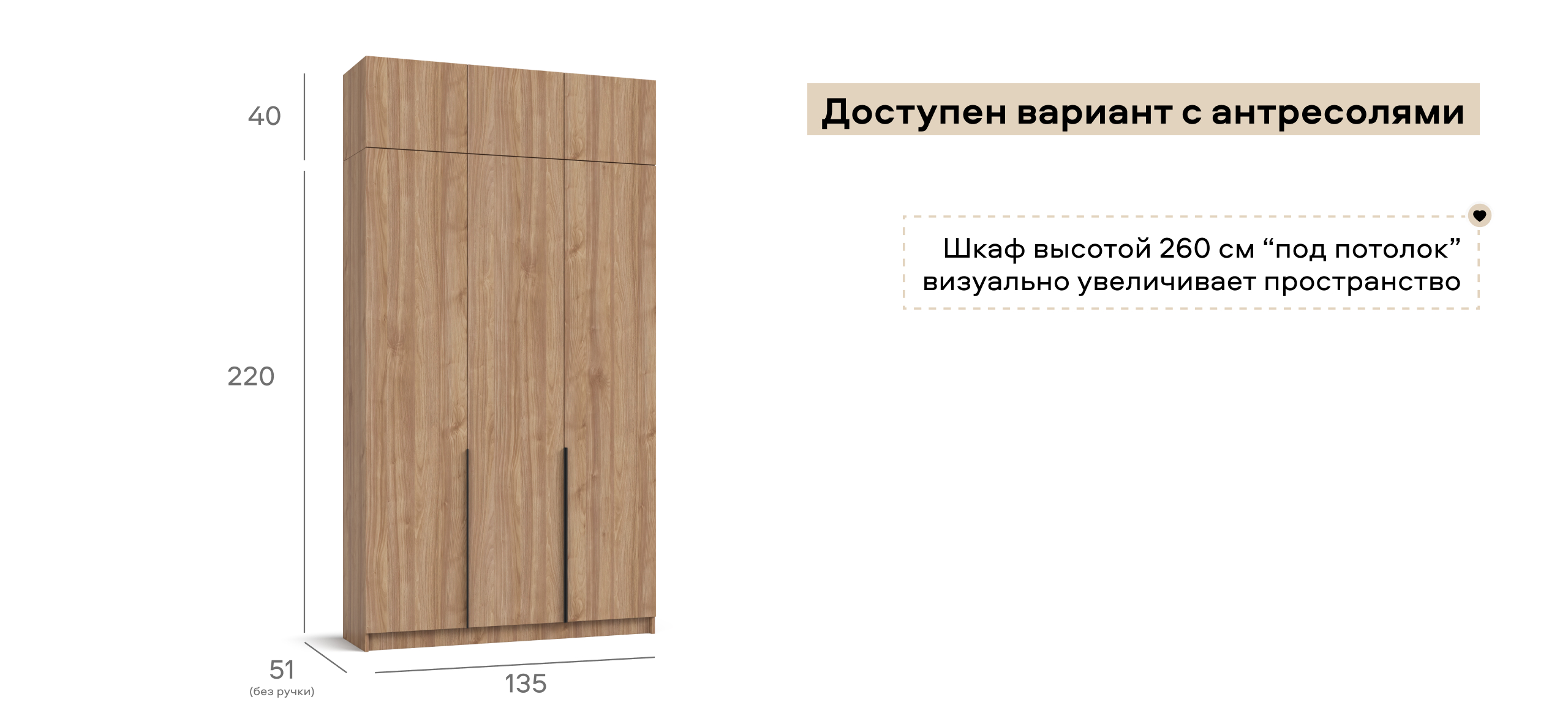 Шкаф Рим 135 — современный ответ на главный запрос городской квартиры: хранить много, занимая мало. Лаконичный фасад с удлинёнными чёрными ручками отсылает к актуальной эстетике 2025 года и делает шкаф ярким акцентом в любом интерьере — от сканди до неоклассики. Внутри продуман каждый сантиметр: просторное отделение легко принимает сезонный гардероб, коробки с обувью и постельное бельё, сохраняя порядок и освобождая комнату от лишних вещей.