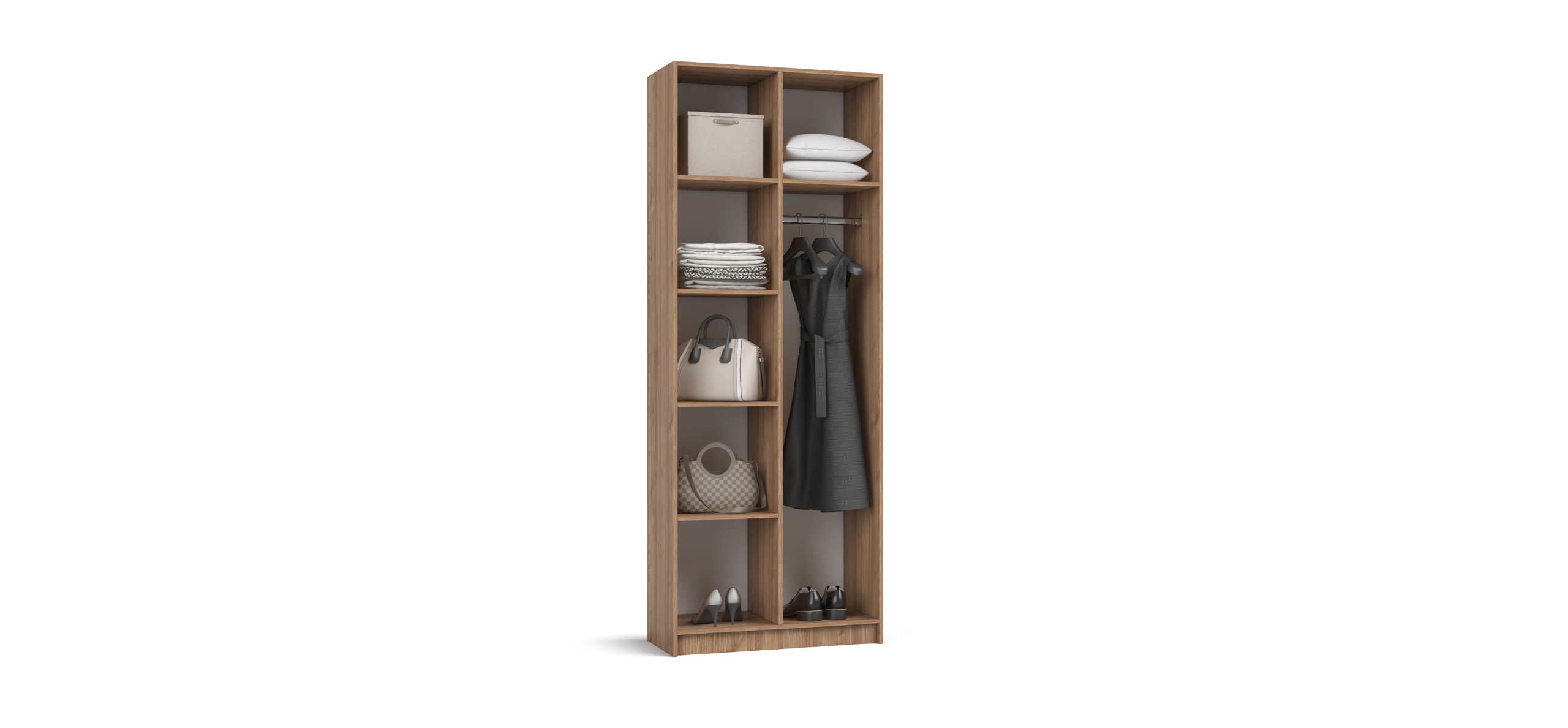 Корпус выполнен из безопасной ЛДСП класса Е1 с устойчивым к истиранию покрытием, чтобы цвет и фактура радовали долгие годы. Рим 80 создаёт ощущение порядка и лёгкости, превращая небольшую спальню или студию в гармоничное, «дышащее» пространство. Выберите шкаф, который хранит вещи аккуратно и делает ваш интерьер свободнее.