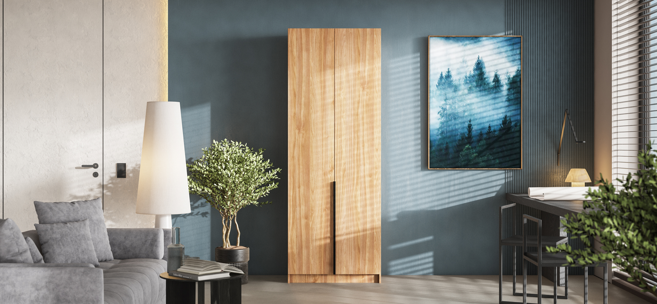 Шкаф Рим 80 — компактный ответ на главный запрос городской квартиры: хранить нужное, сохраняя максимум свободного пространства. Лаконичный фасад с удлинёнными чёрными ручками отсылает к актуальной эстетике 2025 года и делает шкаф ярким акцентом любого интерьера — от сканди до неоклассики. Внутри продуман каждый сантиметр: аккуратное отделение легко принимает базовый гардероб, коробки с обувью и текстиль, поддерживая порядок и избавляя комнату от лишних вещей.