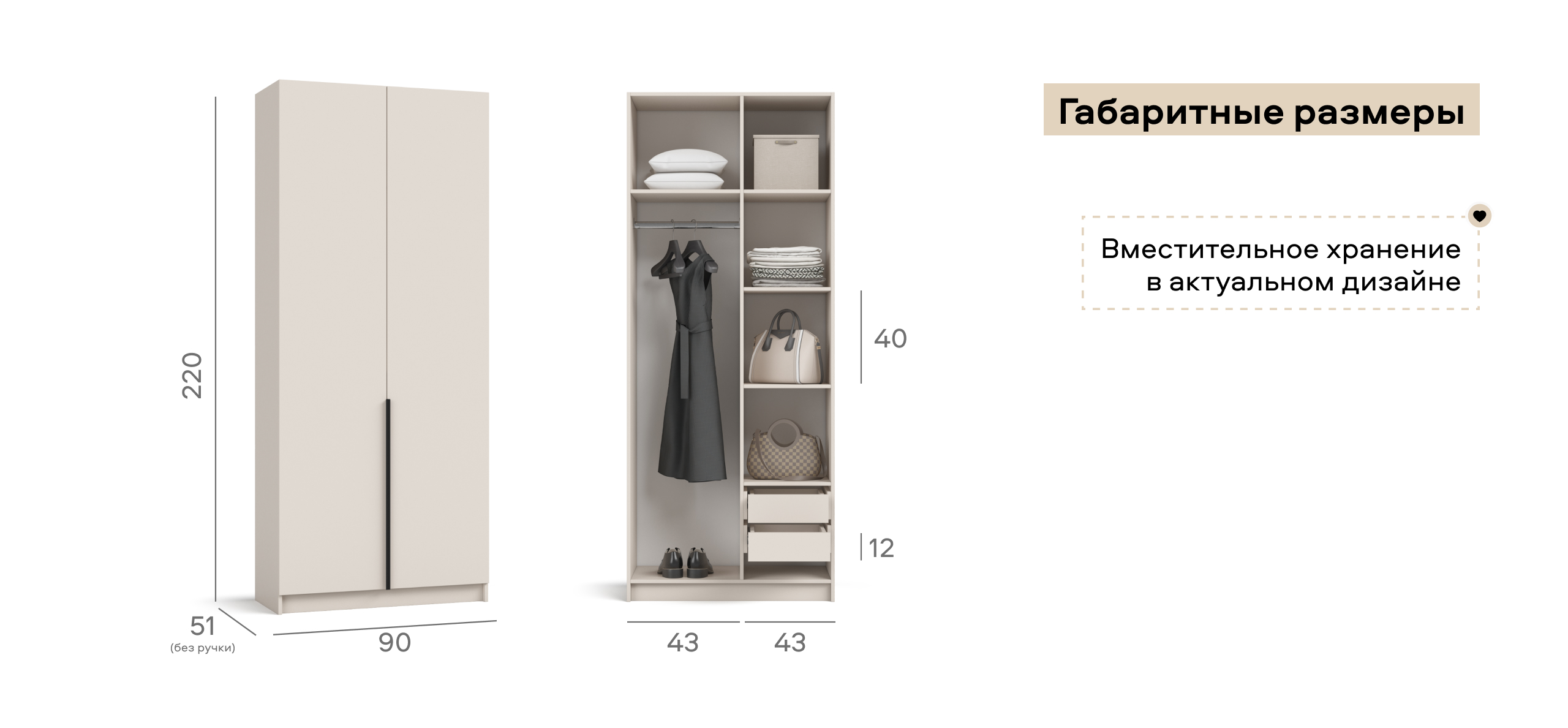 Шкаф Рим 90 — компактный ответ на запрос городской квартиры: хранить всё необходимое, экономя пространство. Лаконичный фасад с удлинёнными чёрными ручками поддерживает эстетику 2025 года и делает шкаф заметным акцентом любого интерьера — от сканди до неоклассики. Несмотря на скромную ширину, продуманное отделение легко принимает базовый гардероб, аккуратные коробки с обувью и текстиль, помогая сохранить порядок и освободить комнату от лишних вещей.