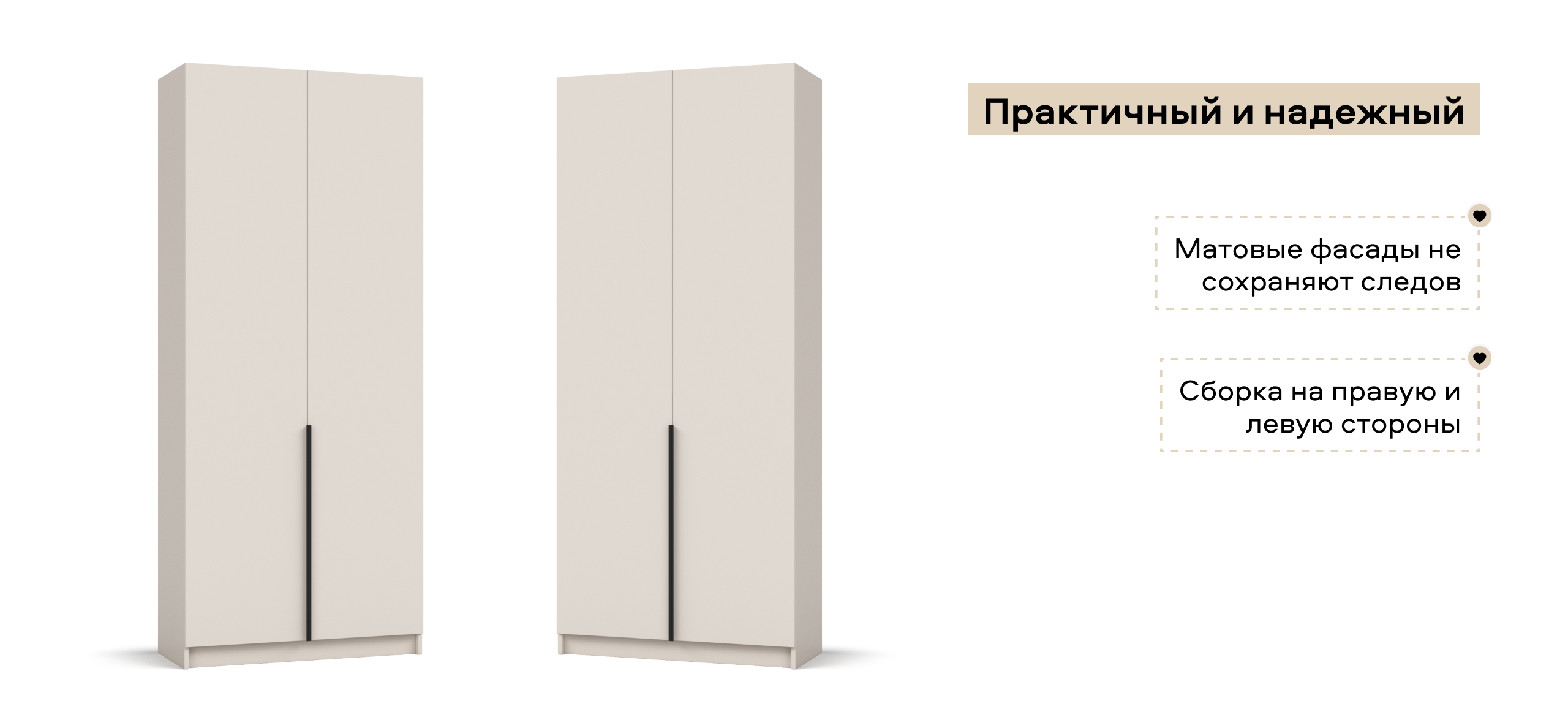 Двери открываются мягко и работают стабильно — без шума, люфта и лишней механики. Надёжный механизм рассчитан на повседневную эксплуатацию