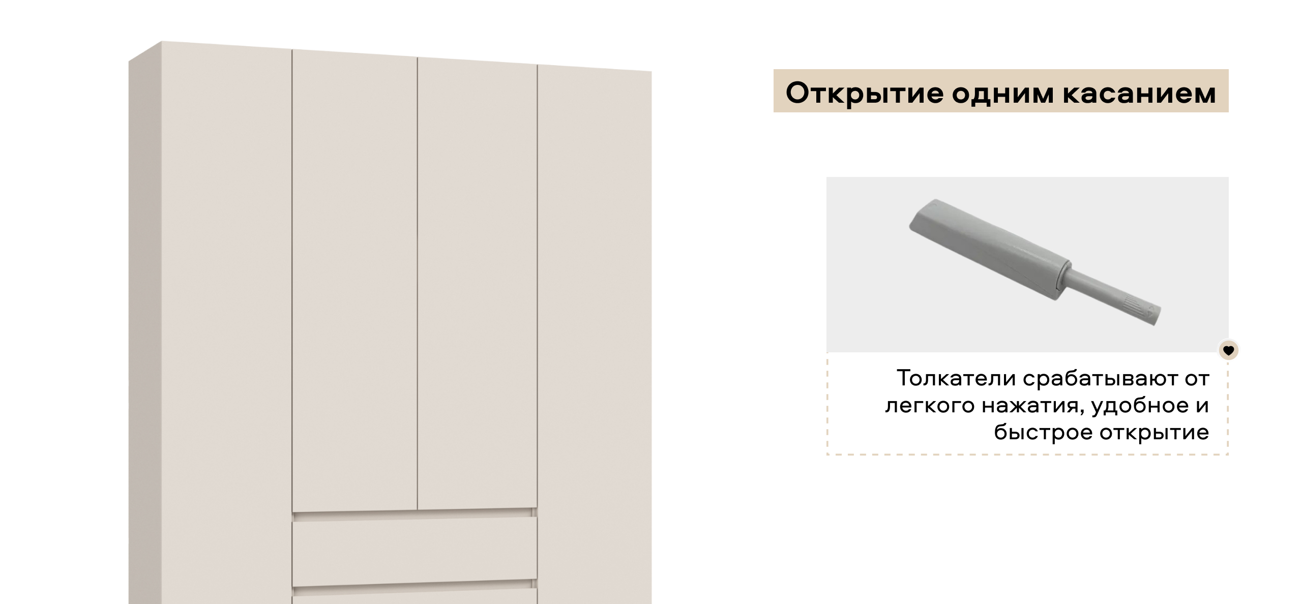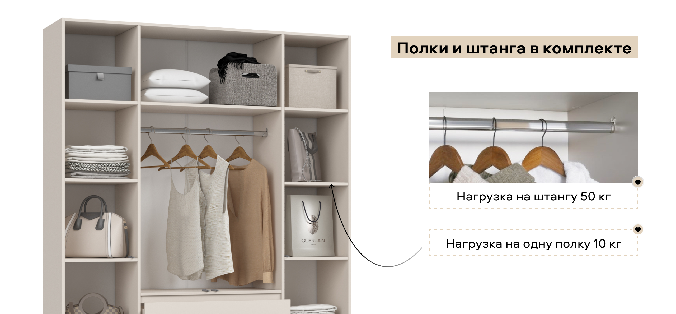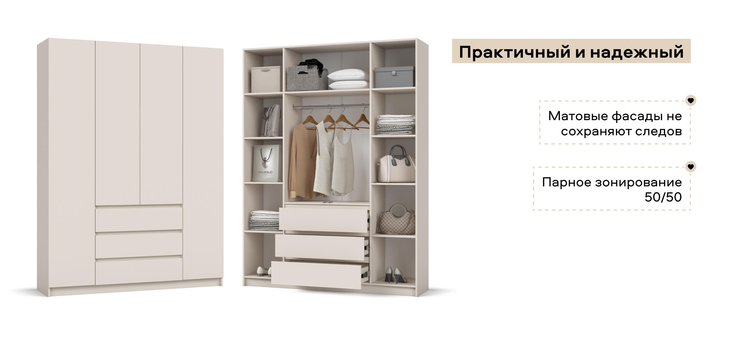 Два оттенка — тёплый Кашемир и светлый Белый — легко встраиваются в сценарии современной квартиры: от спокойного минимализма до мягкой неоклассики. Итог — ощущение упорядоченности и воздуха, когда всё на своём месте и всё под рукой.