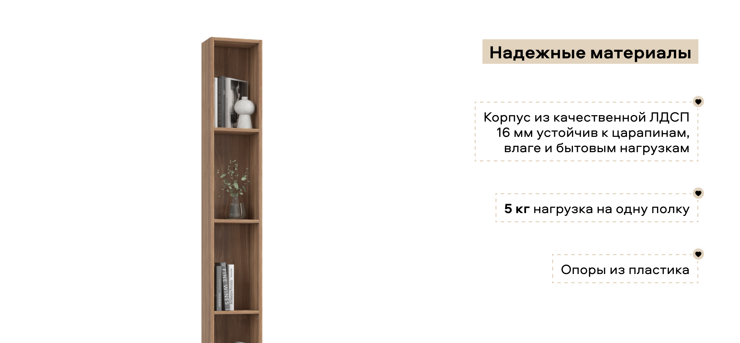 Открытые полки дают свободу сценариев: создайте компактную библиотеку, расставьте декор или смешайте книги с уютными акцентами, чтобы подчеркнуть настроение комнаты.