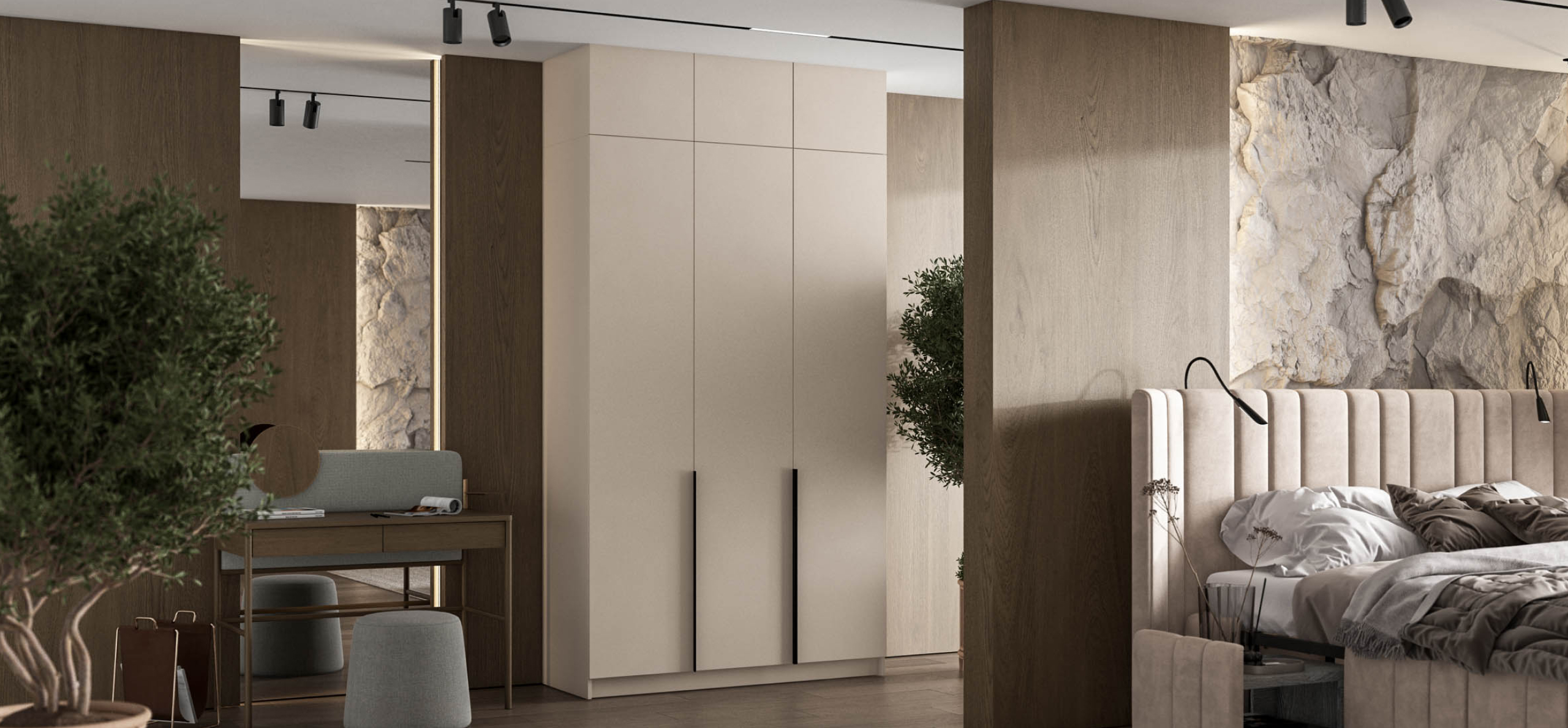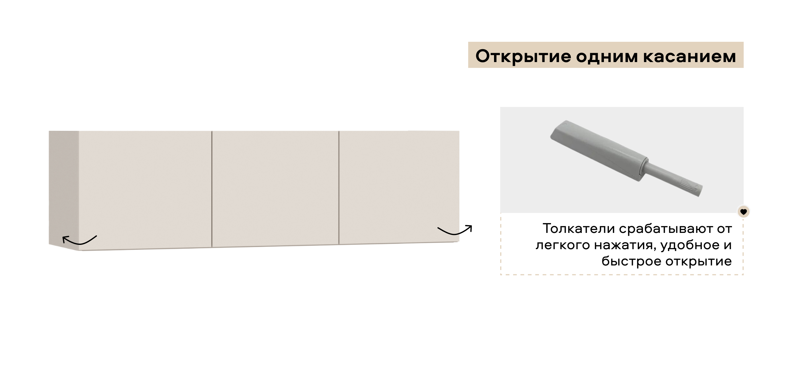 Открывайте фасады лёгким касанием — скрытые толкатели работают бесшумно, даря ощущение заботы о каждом жесте. Храните книги, декор или сезонные аксессуары так, чтобы они радовали глаз, а не собирали пыль.