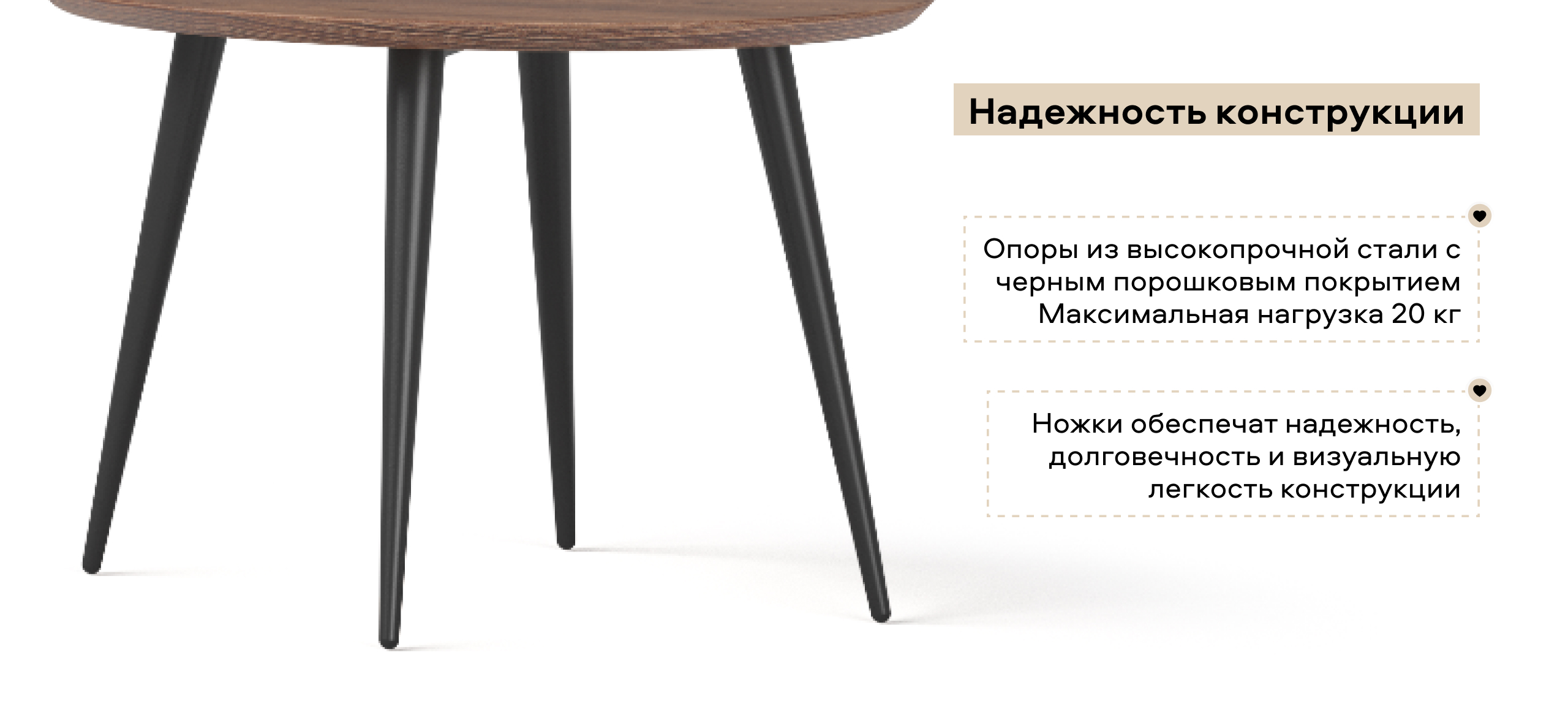 Металлические опоры с изысканным черным порошковым покрытием обеспечивают надежность и визуальную легкость конструкции, делая стол универсальным и гармонично вписывающимся в любой интерьер. Стол представлен в трех современных оттенках — Коричневый, Графитовый и Бежевый — которые подчеркивают природную эстетику и позволяют подобрать решение для любого пространства.