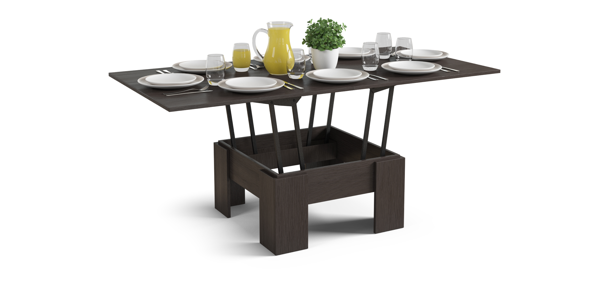 Стол-трансформер – практичное приобретение, выполняющее двойную функцию. В сложенном виде он служит журнальным или письменным столом, занимающим очень немного места в гостиной, а с разложенной столешницей превращается в обеденный стол на 8 персон. Стол оснащен надежным механизмом раскладки и улучшенными креплениями.
