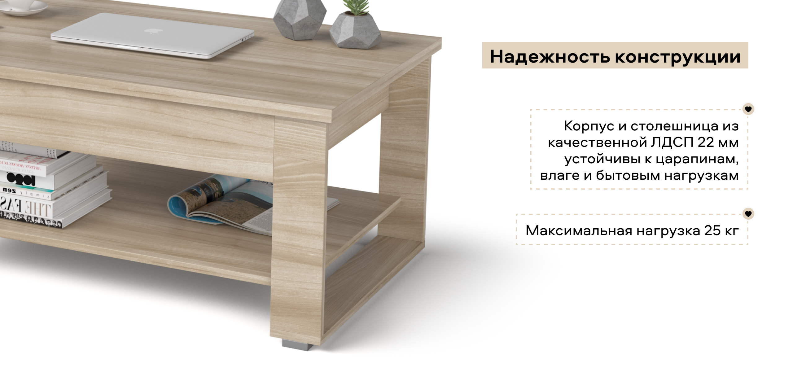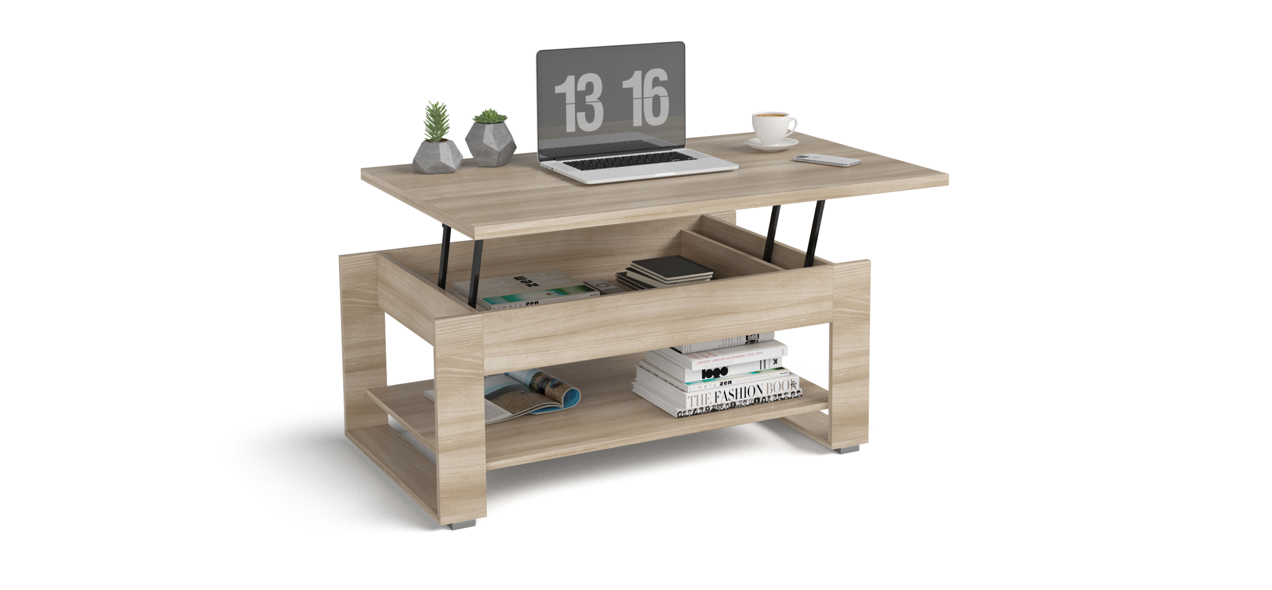 Стол журнальный Люкс – практичное приобретение, выполняющее двойную функцию. В сложенном виде он служит компактным журнальным столиком, с ящиком и вместительной полкой для хранения повседневных мелочей. В разложенном виде он превращается в полноценное рабочее место, позволяющим вам работать не вставая с вашего любимого дивана.