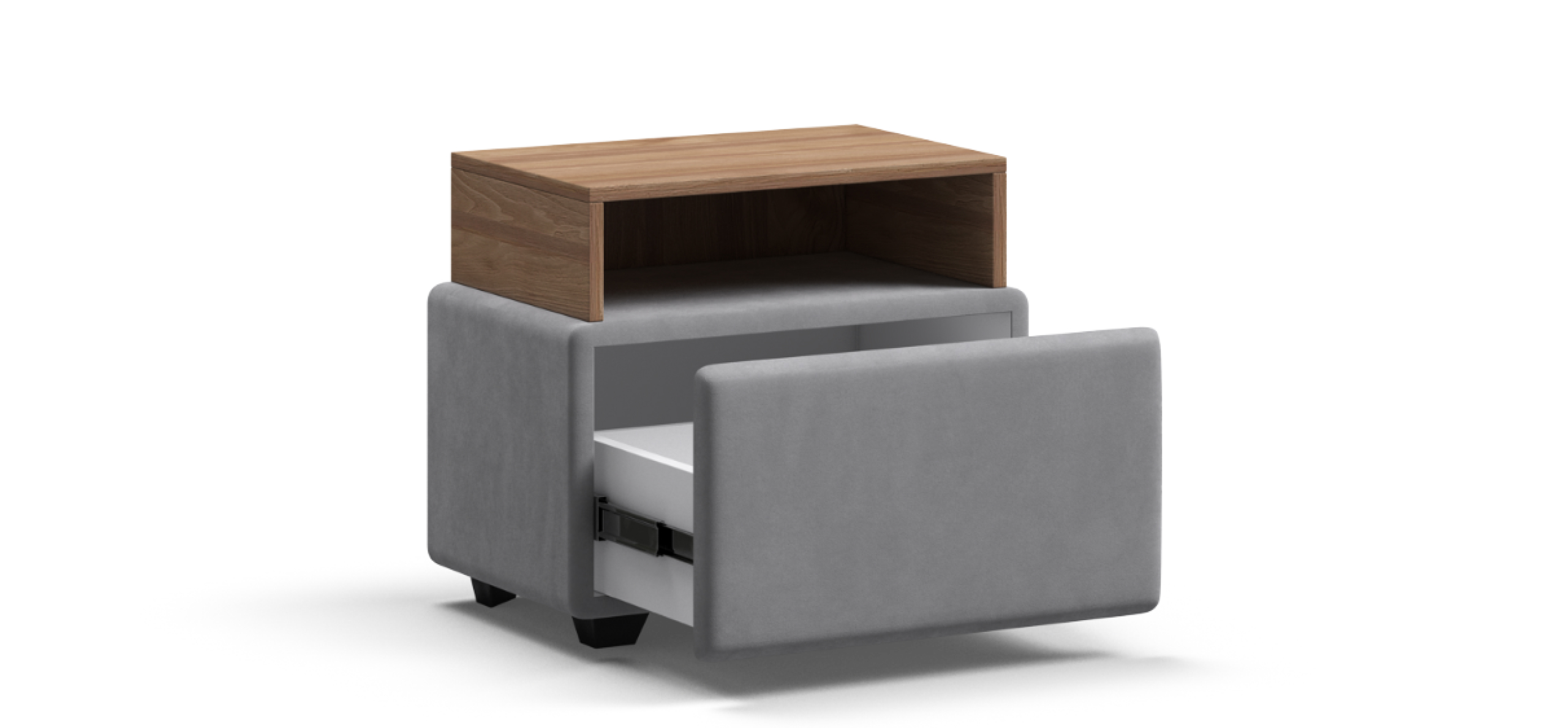 Тумба Босс – разрушает стереотипы о прикроватной мебели! Кто сказал, что она не может быть мягкой? Выдвижной ящик с дополнительной полкой помогут держать самое необходимое под рукой, а мягкая поверхность подарит настоящий домашний уют.